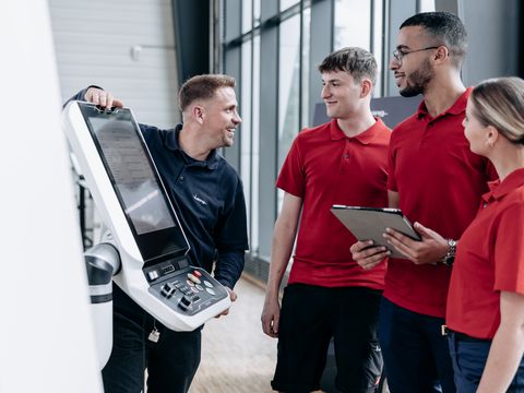 Hintergrund für den Besuch war zum einen, den Lehrkräften die aktuellen Trends in der Zerspanung und die betrieblichen Abläufe zu zeigen. Zum anderen sollte aber auch ein reger Austausch zum Thema Ausbildung entstehen. Vor allem für die Automobilindustrie ist eine gute Ausbildung von großer Bedeutung, denn für Zukunftsfelder wie Elektro und Wasserstoff braucht es gut ausgebildete Fachkräfte.