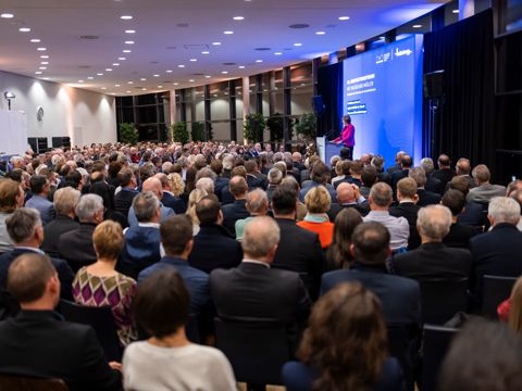 Am Dienstagabend versammelte sich eine neue Rekordzahl mit rund 400 Gästen im Betriebsrestaurant ANTONIS der Anton Häring KG in Bubsheim, um am 40. Innovationsforum in Kooperation mit der Interessengemeinschaft der Erwin-Teufel-Schule teilzunehmen. Für das Thema „Die klimaneutrale und digitale Mobilität der Zukunft – Chancen und Herausforderungen " referierte Hildegard Müller, Präsidentin des Verbandes der Automobilindustrie und ehemalige Staatsministerin der Regierung Angela Merkel.