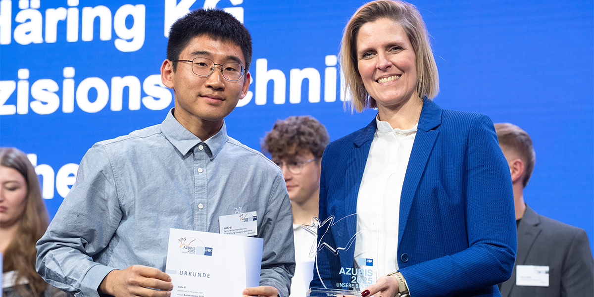 Die Deutsche Industrie- und Handelskammer (DIHK) hat in Berlin die besten Auszubildenden Deutschlands ausgezeichnet. Unter ihnen ist Jiahe Li von der Anton Häring KG in Bubsheim, der als bester in seinem Beruf „Fachkraft für Metalltechnik (Fachrichtung Zerspanungstechnik)“ geehrt wurde.