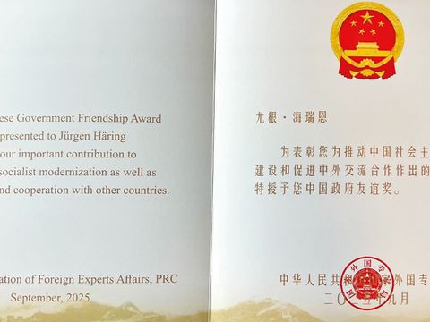 In diesem Jahr erhielten weltweit 50 Persönlichkeiten den Preis – darunter lediglich sechs Deutsche. Vier der Geehrten stammen aus Wissenschaft und Forschung, zwei aus der Wirtschaft. Dass Dr. Häring als einer dieser seltenen Wirtschaftsvertreter ausgezeichnet wurde, unterstreicht die besondere Bedeutung seiner Arbeit für die deutsch-chinesische Zusammenarbeit.