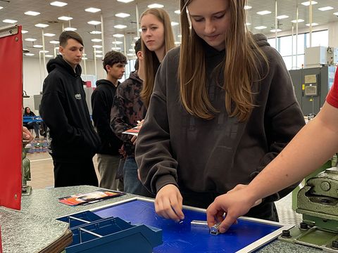 The students gained insights into modern manufacturing processes at Haering Polska. Machines and technologies were presented, along with applications from automation technology and the use of robotics in modern manufacturing processes. Practical demonstrations and discussions with trainers, employees, and apprentices presented the program and showed how school-based education and professional practice can be connected. The focus was on the Haering Academy, where students learn technical fundamentals and gain practical experience early on.