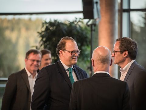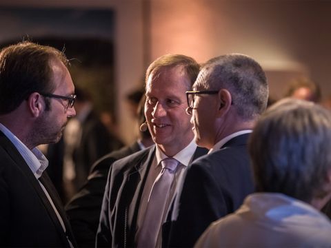 drei männliche Mitarbeiter von Häring im Anzug unterhalten sich