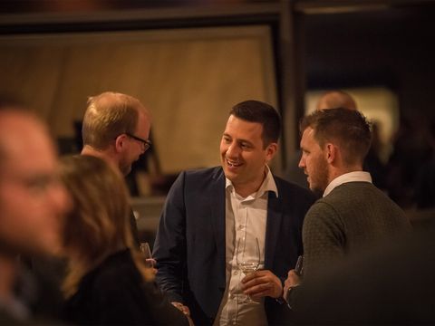viele Männer in Anzug unterhalten sich
